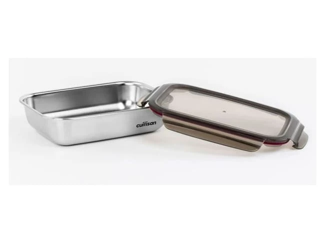 La Boite conservation inox rectangle 1900 ml Cuitisan, dotée de la technologie CromoSteel (alliage inox breveté), est le seul contenant inox au monde passant au micro-ondes (sans couvercle).