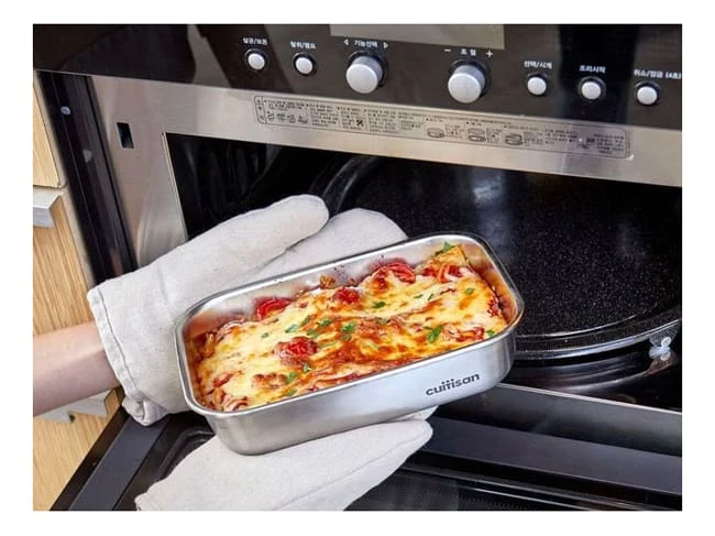 Cette contenance de 1900 ml permet de cuisiner un gratin ou des lasagnes et de le conserver ensuite au réfrigérateur ou de l’amener au bureau.