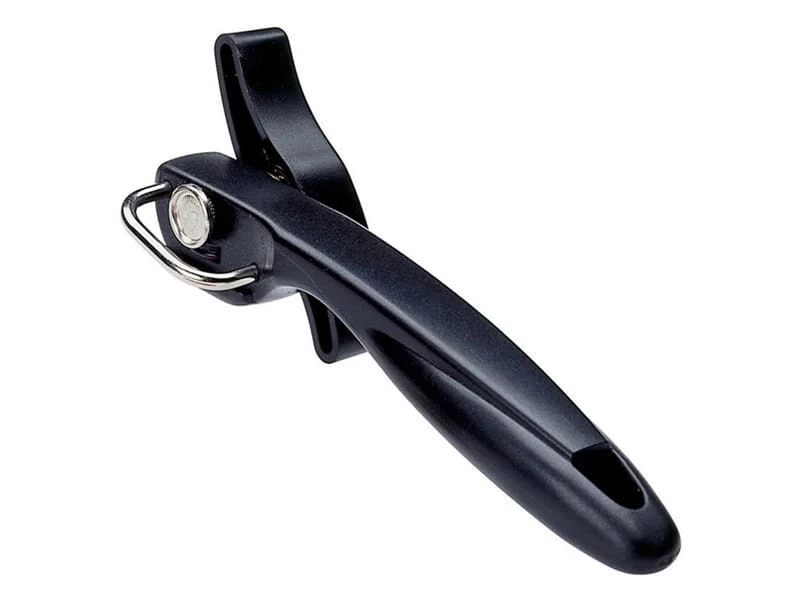 Ouvre-boîte en ABS, guide inox, molette en acier.