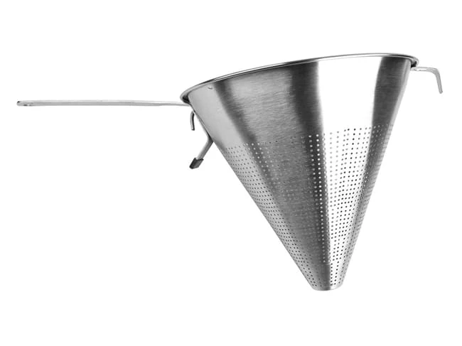 Chinois en acier inoxydable de forme conique, pour passer vos fonds de sauces, vos jus ou toutes autres préparations liquides.