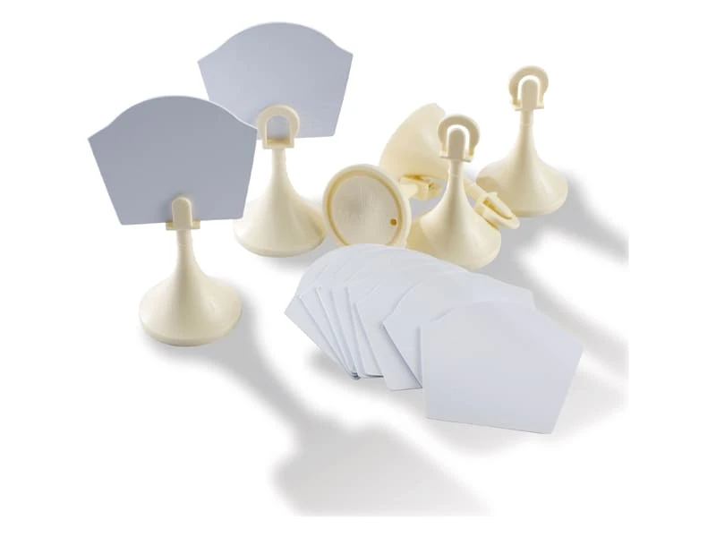 Porte étiquette en polypropylène lesté, très stable, facile à nettoyer.