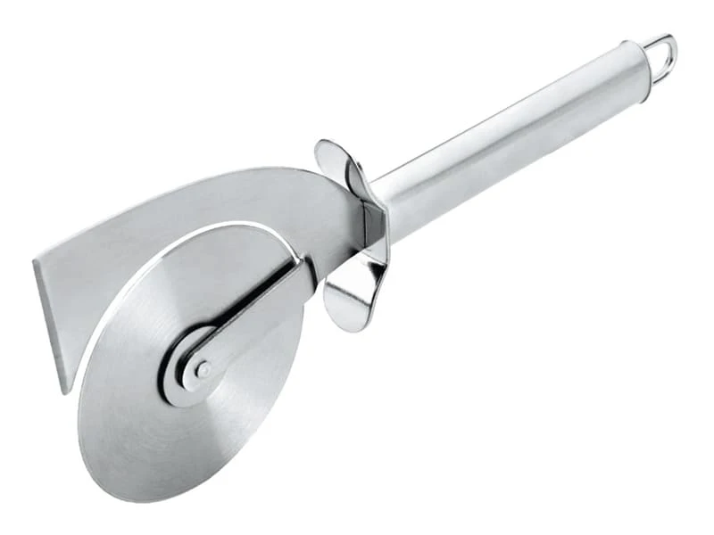 Roulette à pizza en acier inoxydable. La lame permet de couper la croute de la pizza.